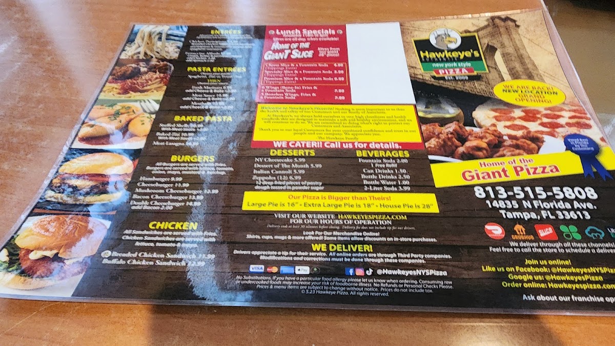 Welcome to Hawkeye's New York Pizza and Pasta, a culinary gem nestled in Tampa, Florida! This inviting eatery offers a delightful range of New York-style pizzas and hearty pasta dishes that will leave your taste buds dancing.